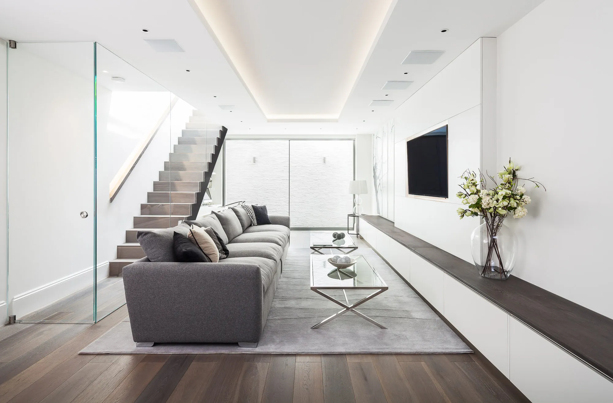 The kitchen, designed by Roundhouse, anchors the ground floor with a blend of elegance and practicality, while a cutting-edge AV system integrates technology seamlessly throughout the house. The interiors balance comfort with refinement, designed to meet the needs of a busy family while maintaining timeless appeal.
