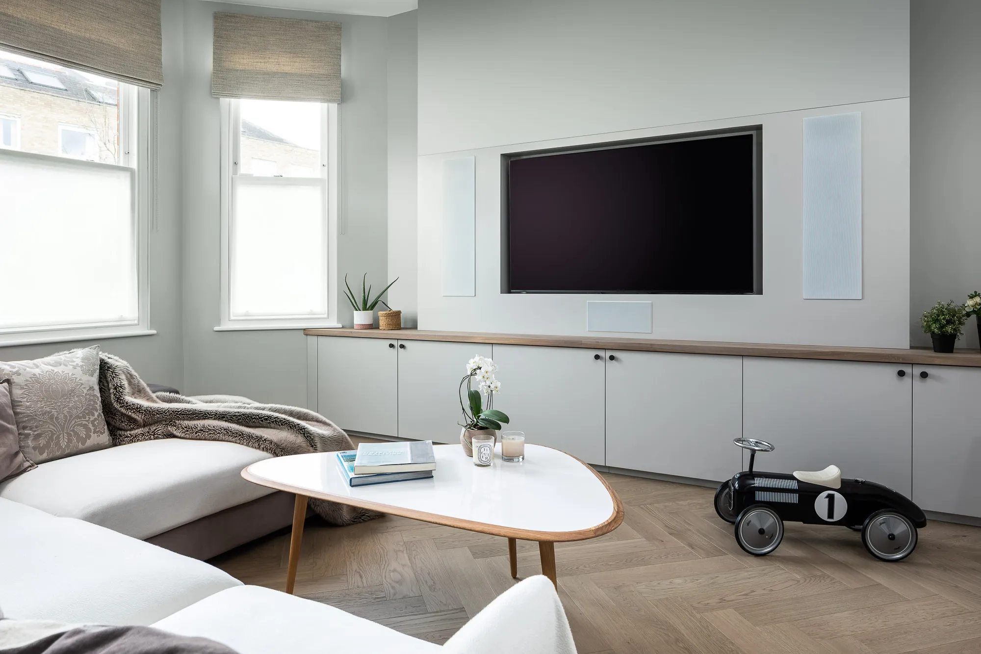 Every element, from the kitchen to the joinery and soft furnishings, was designed bespoke by EMR to suit the family’s needs. The interiors combine practicality with refinement, ensuring the house works seamlessly for daily life while maintaining a timeless sense of style.