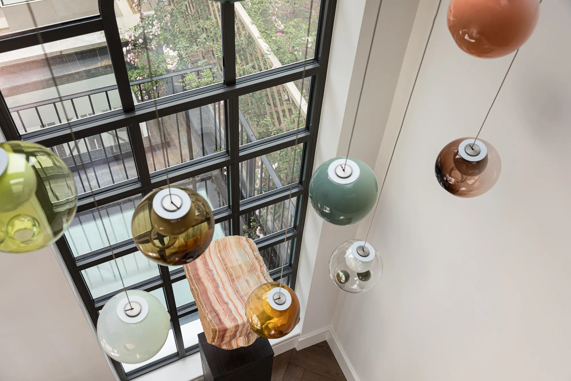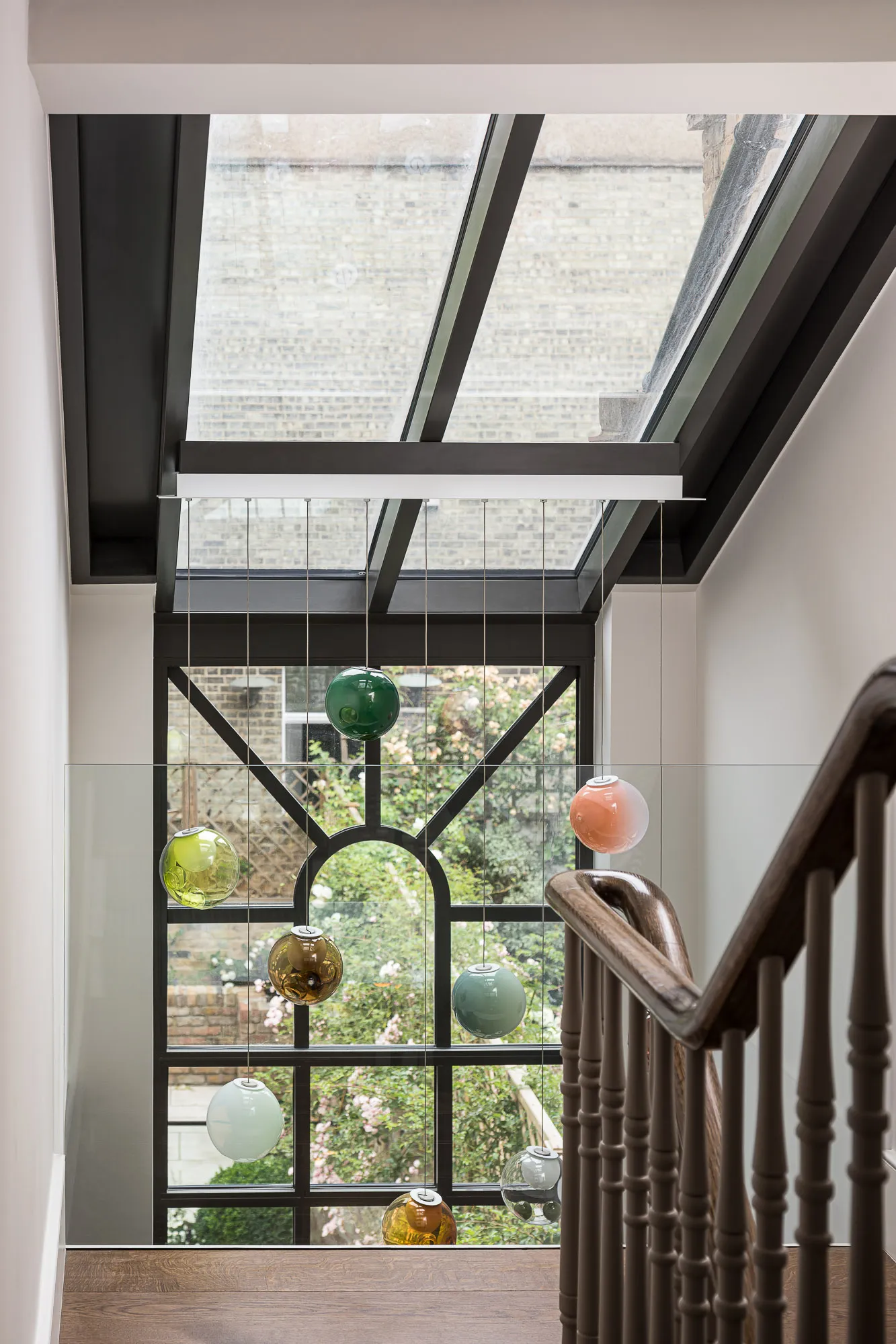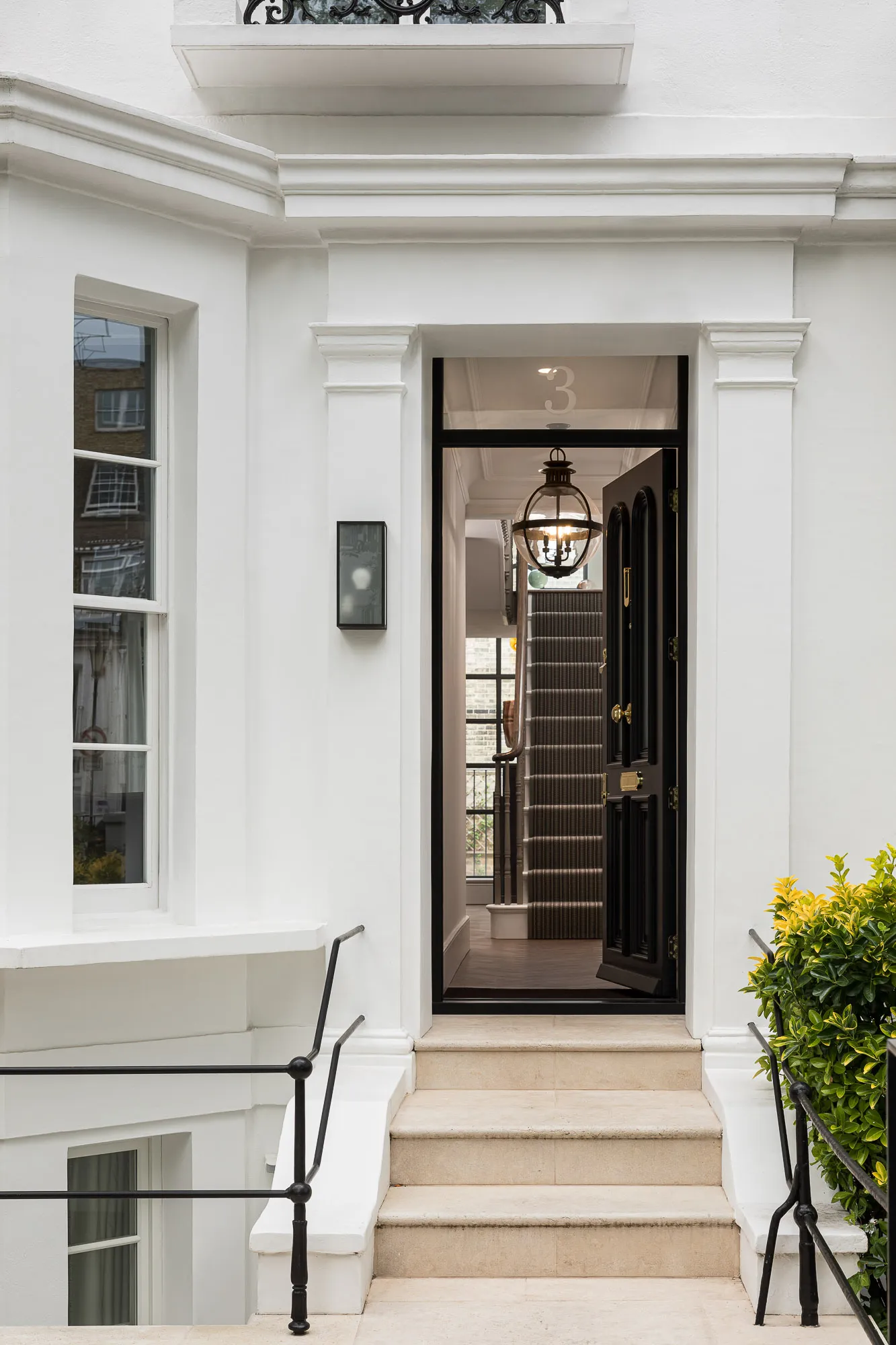 A striking double-height space was introduced at the back of the ground floor with a custom Crittall-style fixed black window, bathing the hallways, stairwell and adjoining reception rooms in natural light. The result is a sense of openness and warmth, rare for homes in central London.
