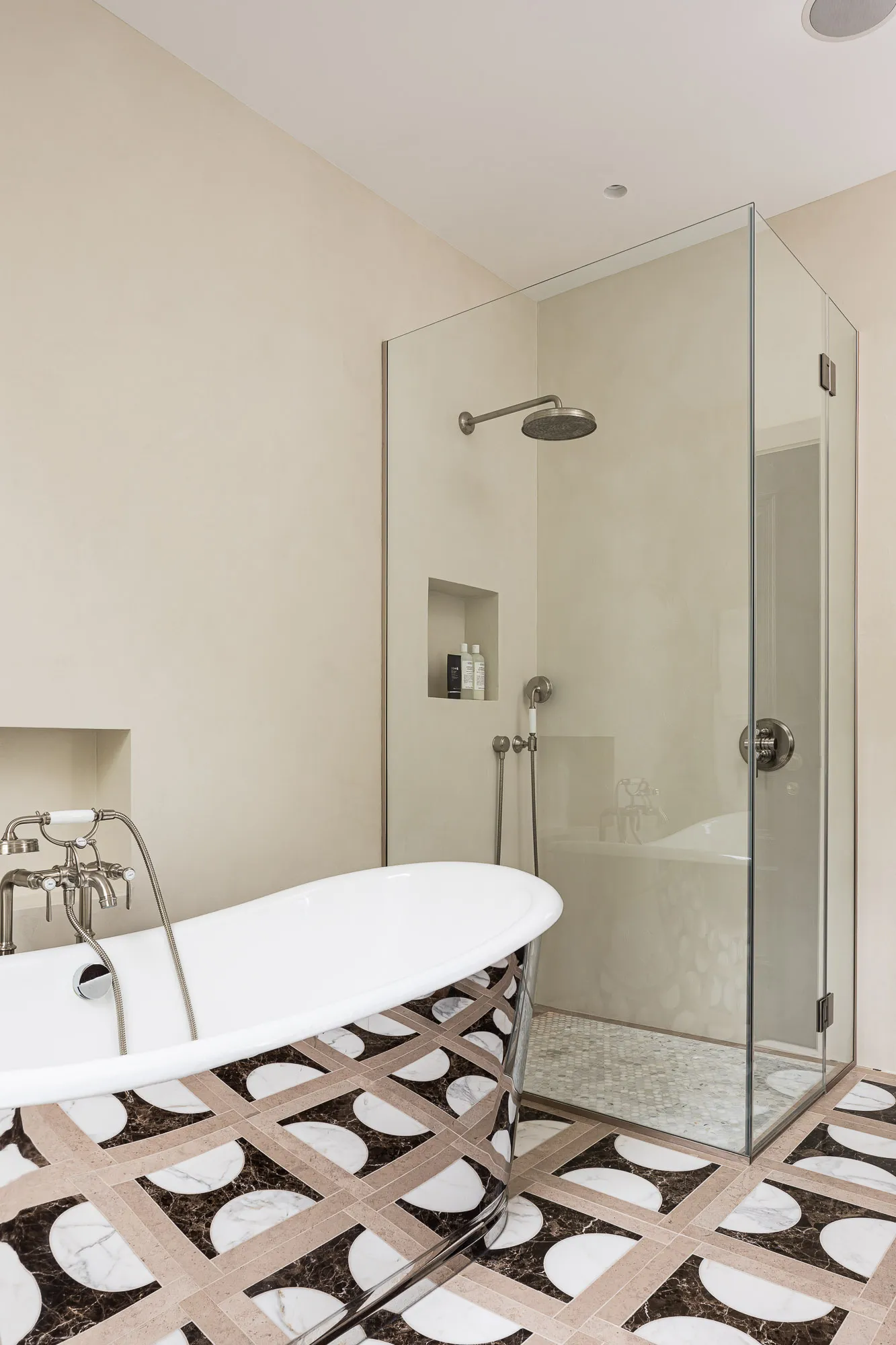 At roof level, the outdated loft space was replaced with a sophisticated mansard roof and private terrace. This provides a highly coveted outdoor retreat — secluded, elegant and perfectly oriented to enjoy in the heart of Kensington.
