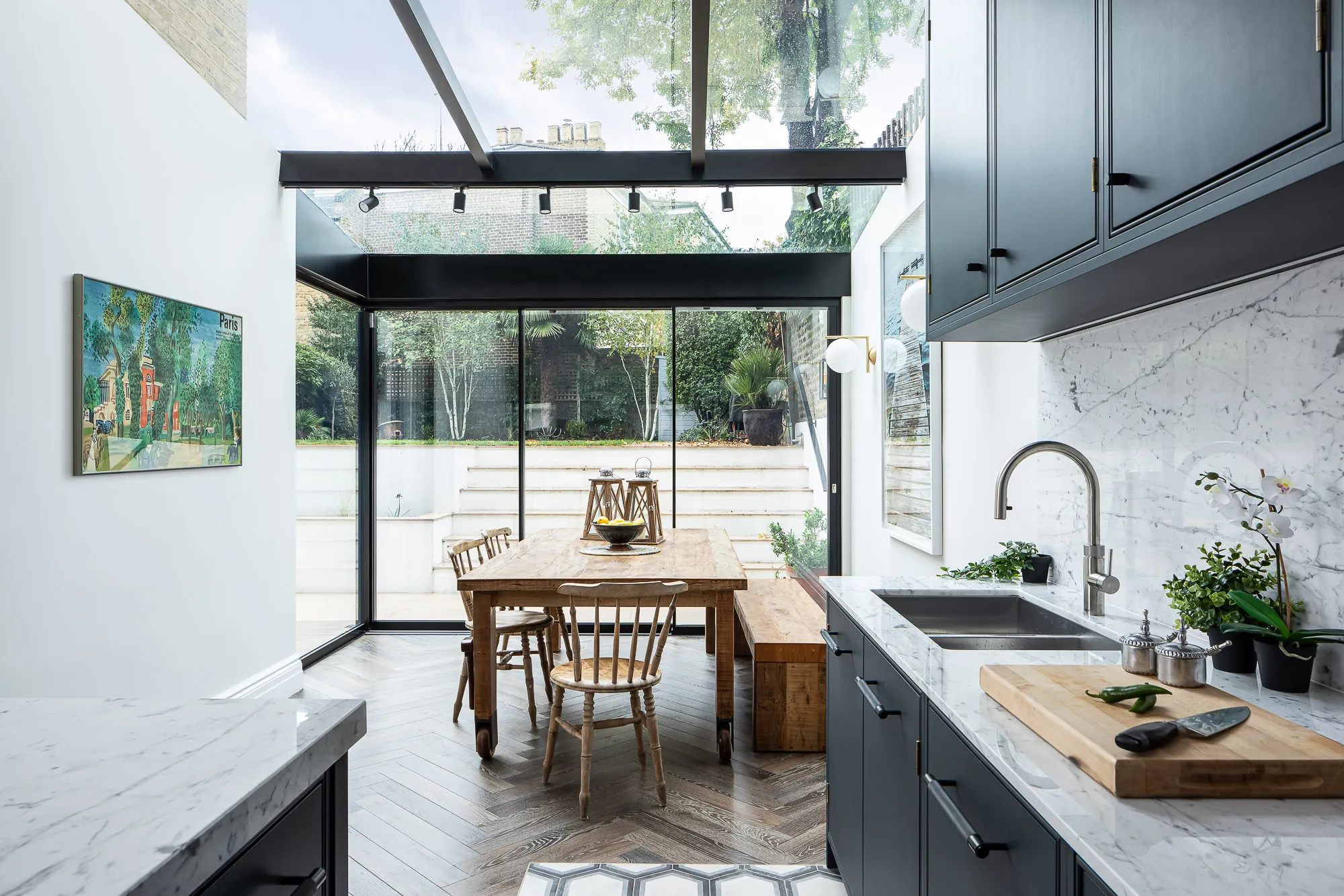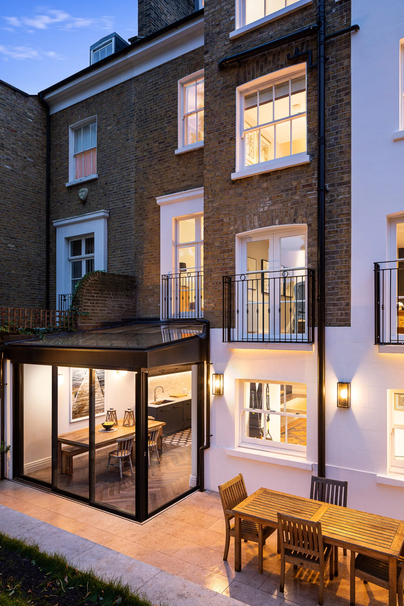 level — including a new 15 sqm conservatory — and turning an underused basement into a series of light-filled, highly practical spaces.
